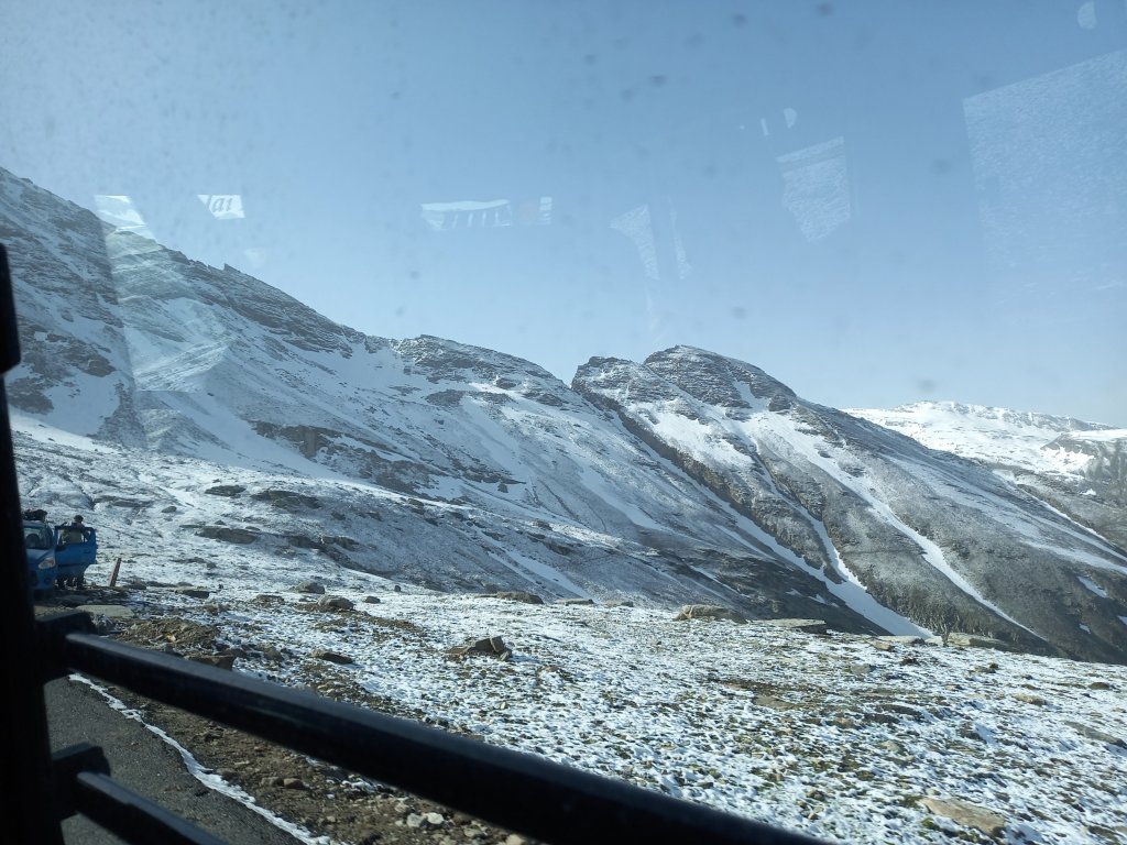 The next day began even before cock-crow as we headed towards Rohtang Pass- a few hours from Manali. As the sun rose, I fully became aware of the scenery that surrounded me. The tops of the Himalayas were gently kissed by the early morning sun, as the pure rays spread a gleam of fiery orange on the opaline white snow. It was a dream to wake up to this view, to this enthralling spectacle that has been captured and etched firmly in my mind. The road to Rohtang pass was an ethereal one. With green sloping conifers on one side and the Himalayas towering in their majesty on the other, we ventured further, staring agog at the unparalleled wilderness surrounding us.